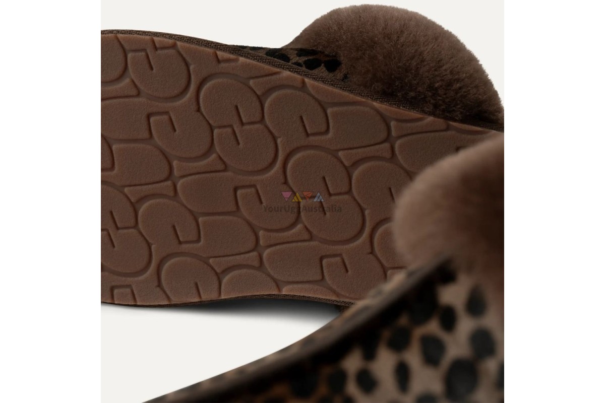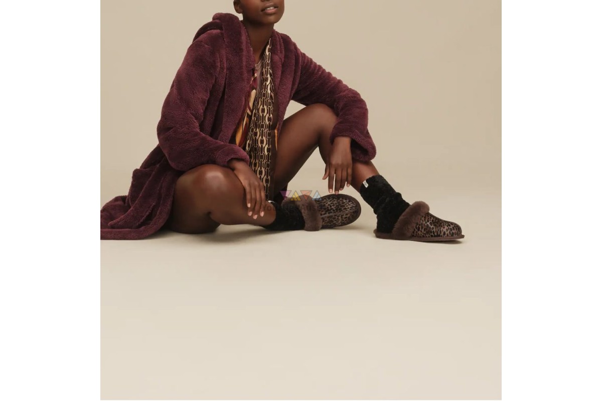 Тапочки UGG Scuffette Caspian Burnt Cedars — комфортные женские тапочки с меховой отделкой и эффектным анималистичным рисунком. Они дарят уют и тепло даже в самые холодные дни, обеспечивают удобную посадку и длительную носку. Подходят для ежедневного использования и идеально смотрятся с домашней одеждой.