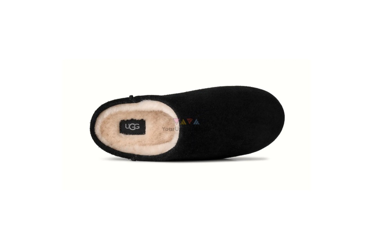 UGG Women’s Elea Slip-On Black — женские утеплённые шлёпанцы-полутапочки, созданные для абсолютного комфорта. Верх из мягкой замши, внутренняя отделка из овечьей шерсти и гибкая резиновая подошва делают модель тёплой, практичной и долговечной. Минималистичный чёрный цвет гармонично впишется в любой образ, а лёгкая конструкция обеспечит удобство на каждый день.